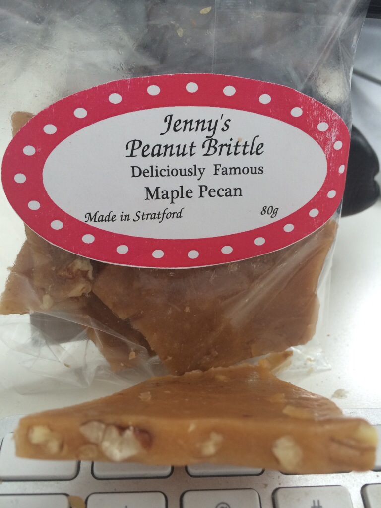 So as takeaway from the event we were given some Home made Maple Pecan Peanut Brittle from Jenny Made in Stratford it was SOOO Good i gotta go back just to get more of that yumm so when your there be sure to pick some up 🙂